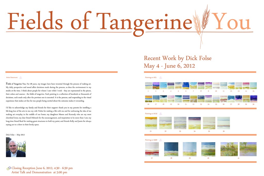 Fields of Tangerine You (2012) May 4 – June 6, 2012 Kelly’s Bakery & Cafe Share this: Click to share on X (Opens in new window) X Click to share on Facebook (Opens in new window) Facebook Like Loading...