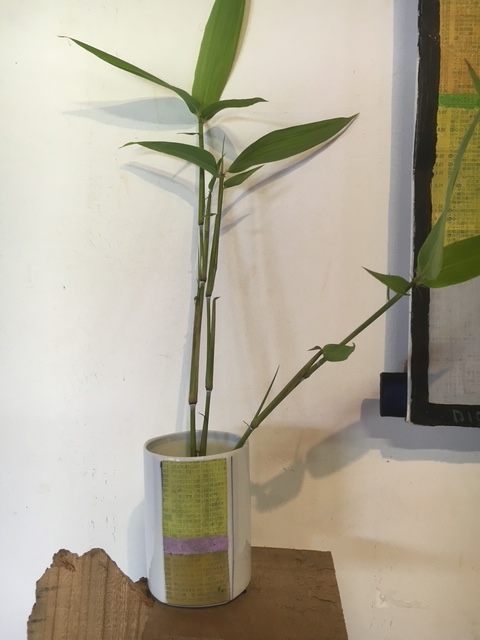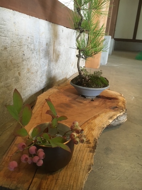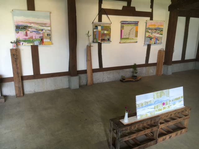 Shiro Oni has a gallery in a former Saki Brewery. Visiting artists had an exhibition that was well attended by the regional community and press. Each painting was hung as a scroll with a plant/container companion piece.
